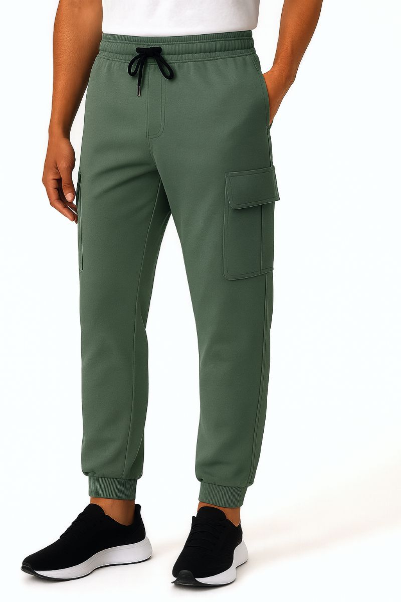 72 Pieces Mens Cotton Fleece Cargo Joggers In Basil Assorted Sizes S-xl - Mens Sweatpants