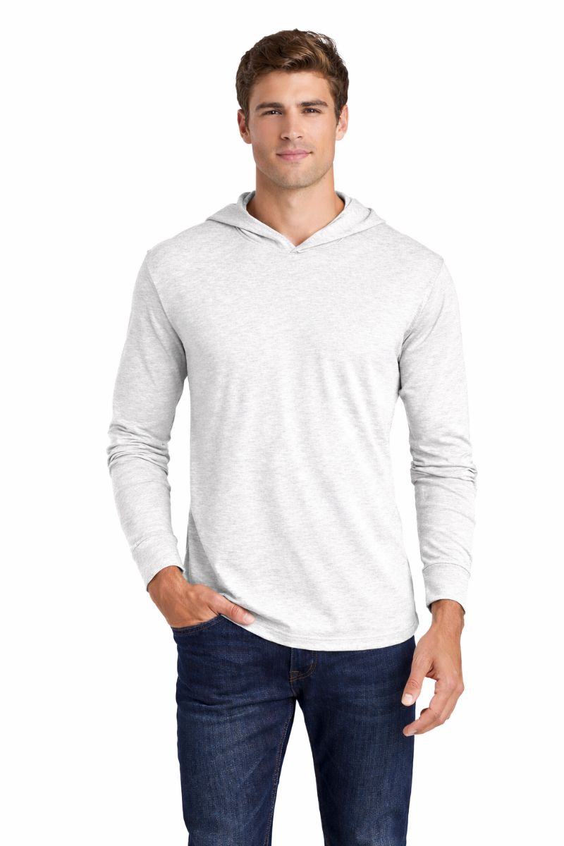 12 Pieces Mens Unisex Triblend Hooded Long Sleeve Pullover T-Shirt Size Large Heather White - Solid T-Shirts