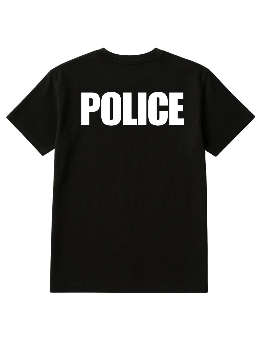 12 Pieces Unisex Cotton Police Printed T Shirt Black With White Print Back And Front Size Large - Event Personnel Tees