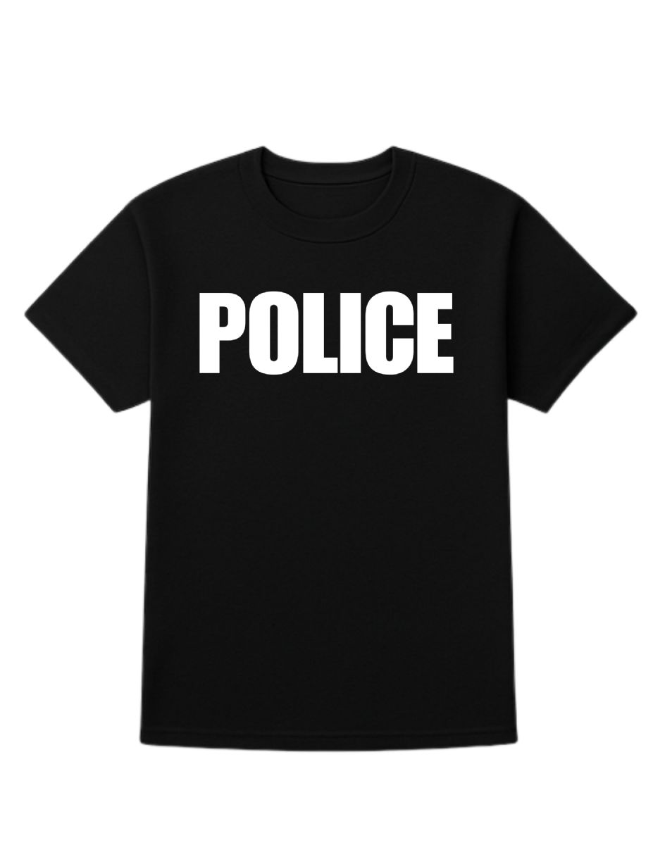 12 Pieces Unisex Cotton Police Printed T Shirt White With Black Print Back And Front Size Large - Event Personnel Tees