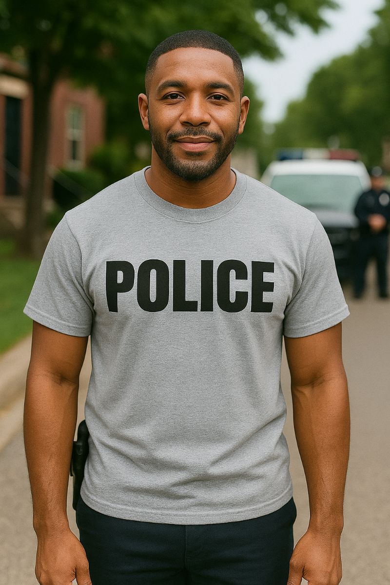 12 Pieces Unisex Cotton Police Printed T Shirt Gray With Black Print Back And Front Size Large - Event Personnel Tees