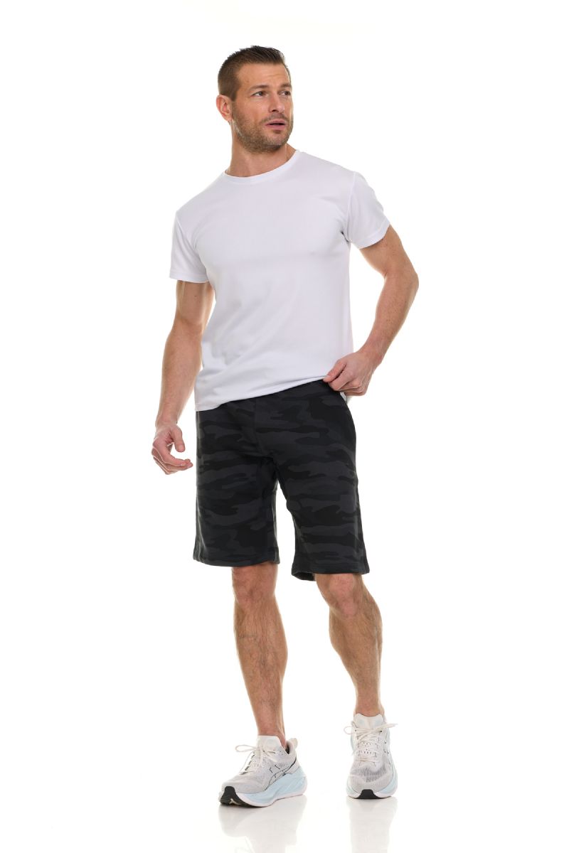 144 Pieces Mens Black Camo Fleece Shorts With Side Pockets Size 3xl - Mens Shorts for Donation