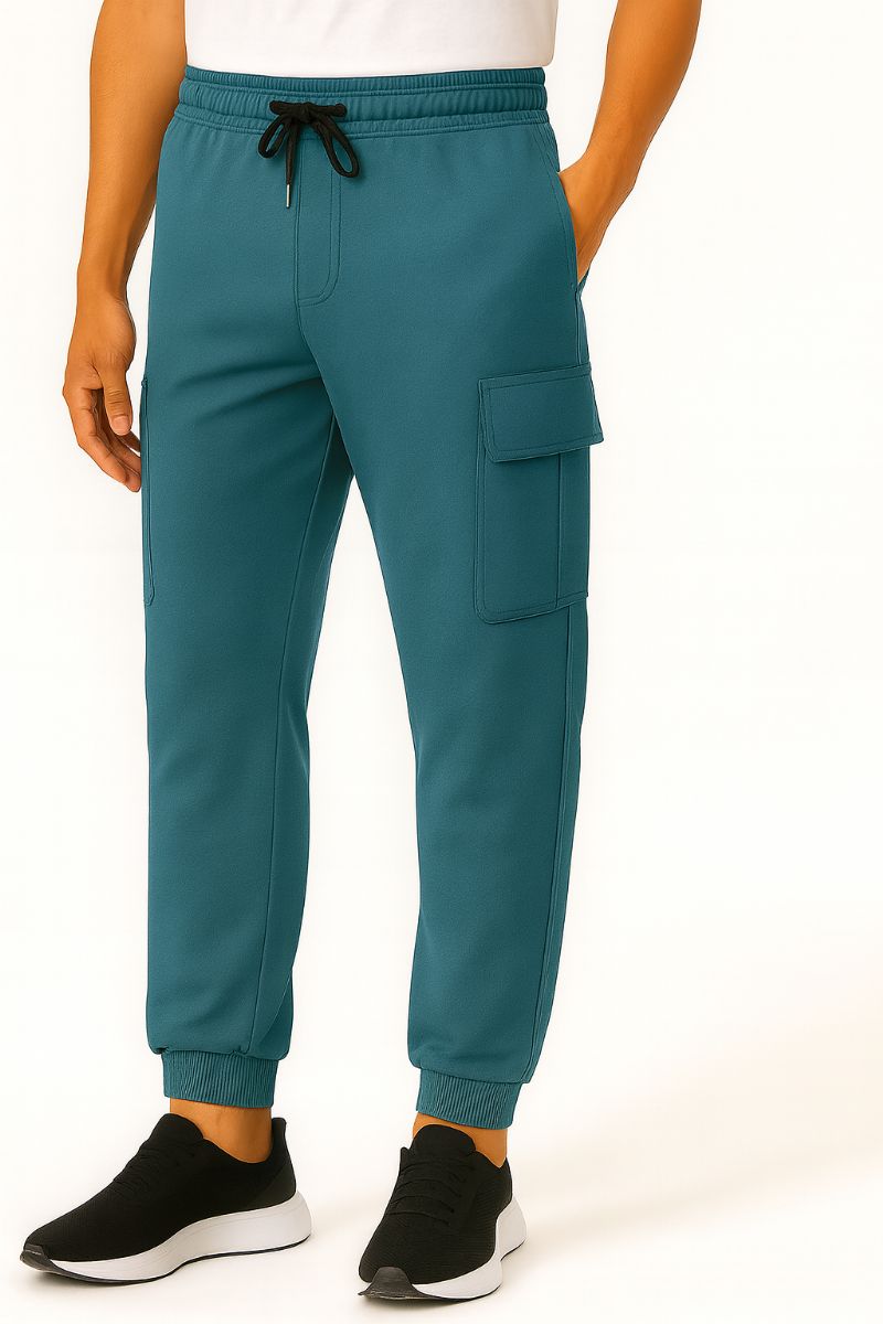 72 Pieces Mens Cotton Fleece Cargo Joggers In Teal Assorted Sizes S-xl - Mens Sweatpants