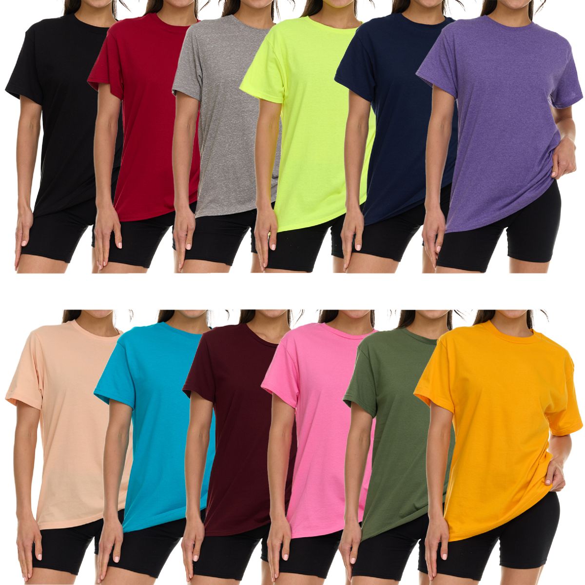 48 Pieces Womens Oversized Cotton Crew Neck Short Sleeve T-Shirts assorted colors , Small - Women's T-Shirts
