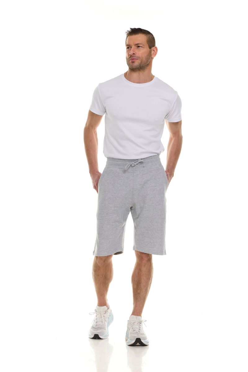 The Men's Cotton Fleece 3-Pocket Shorts in heather gray offer soft comfort and practical storage, ideal for casual wear or active lifestyles.