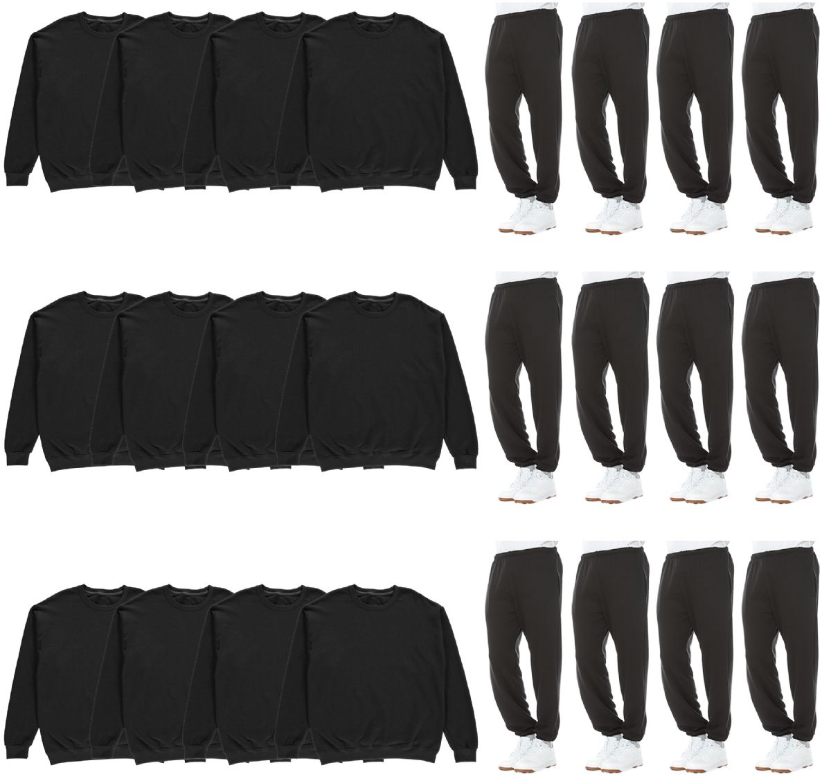 24 Pieces Mens Fleece Cotton Blend 12 Jogger Pants And 12 Crewneck Sweatshirts In Black Size Large - Mens Sweat Shirt