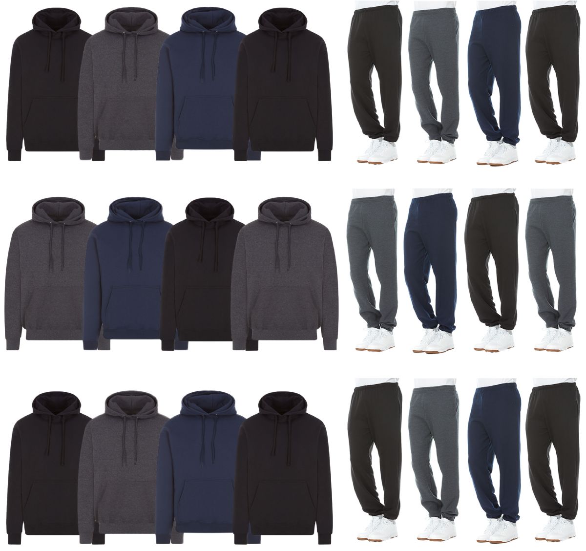 24 Pieces Mens Fleece Cotton Blend 12 Jogger Pants And 12 Hoodies In Assorted Dark Colors Size Medium - Mens Sweat Shirt