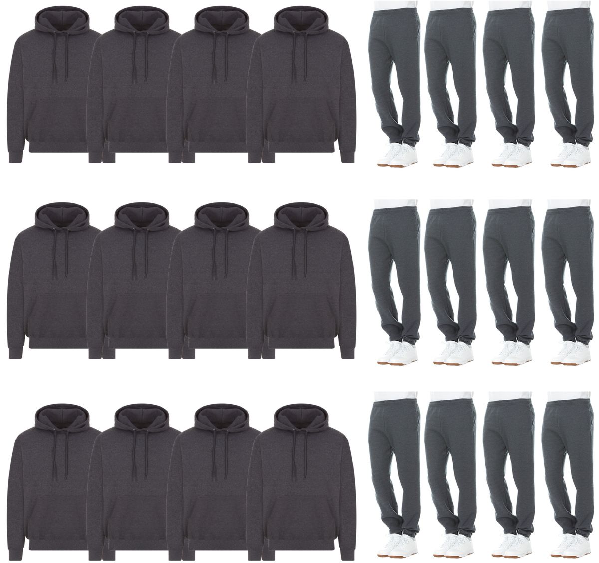 24 Pieces Mens Fleece Cotton Blend 12 Jogger Pants And 12 Hoodies In Gray Size Large - Mens Sweat Shirt