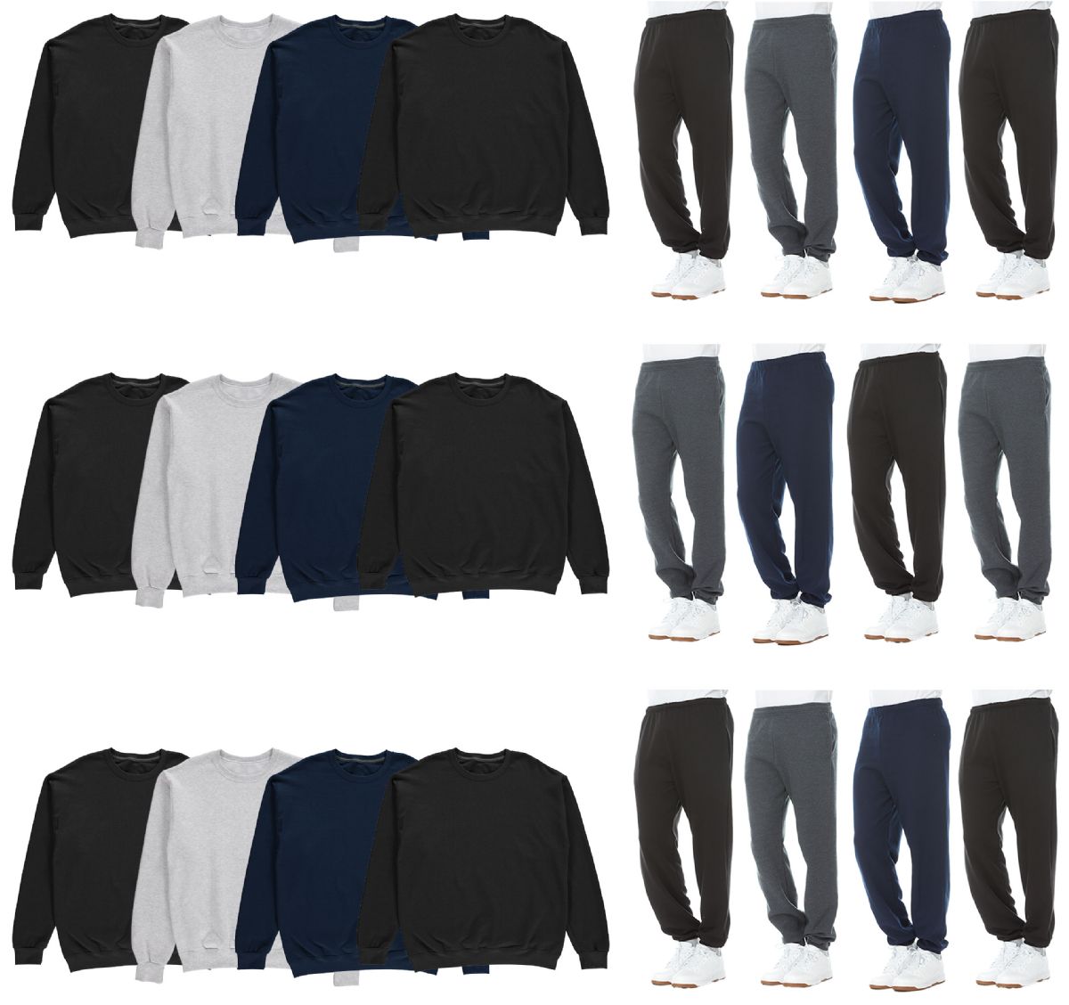 24 Pieces Mix And Match Mens Fleece Jogger Pants And Crew Neck Sweatshirts Assorted Colors Size Xlarge - Mens Sweat Shirt