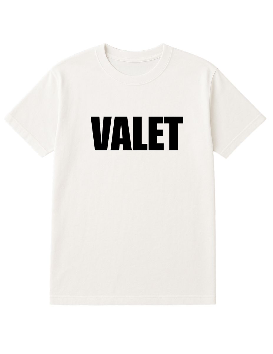 Design: Black "Valet" print on back and front