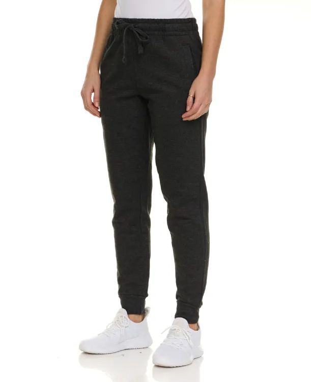 These women's charcoal heather fleece-lined joggers in size Medium are a perfect blend of style and comfort. Made from soft fleece-lined fabric, they offer cozy warmth ideal for colder days. Featuring three functional pockets?two side pockets and one back pocket?these joggers provide practical storage for essentials. The elastic waistband ensures a comfortable and adjustable fit, making them perfect for lounging, casual wear, or light workouts.