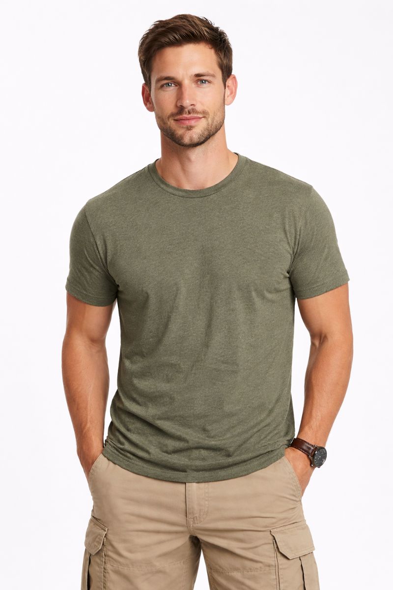 36 Pieces Mens Urban Long Body Short Sleeve Tee Cotton Heather Olive Size X-Large - Solid T-Shirts