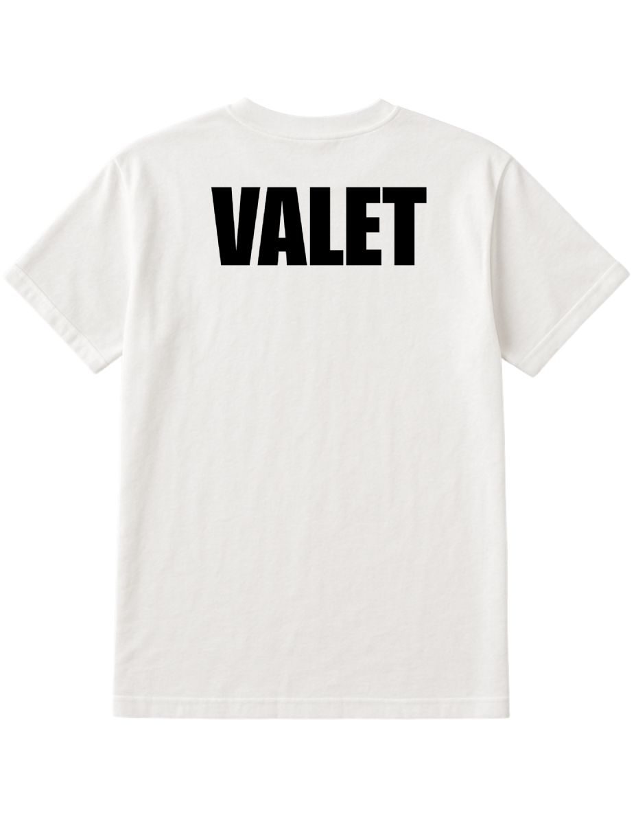 Design: Black "Valet" print on back and front