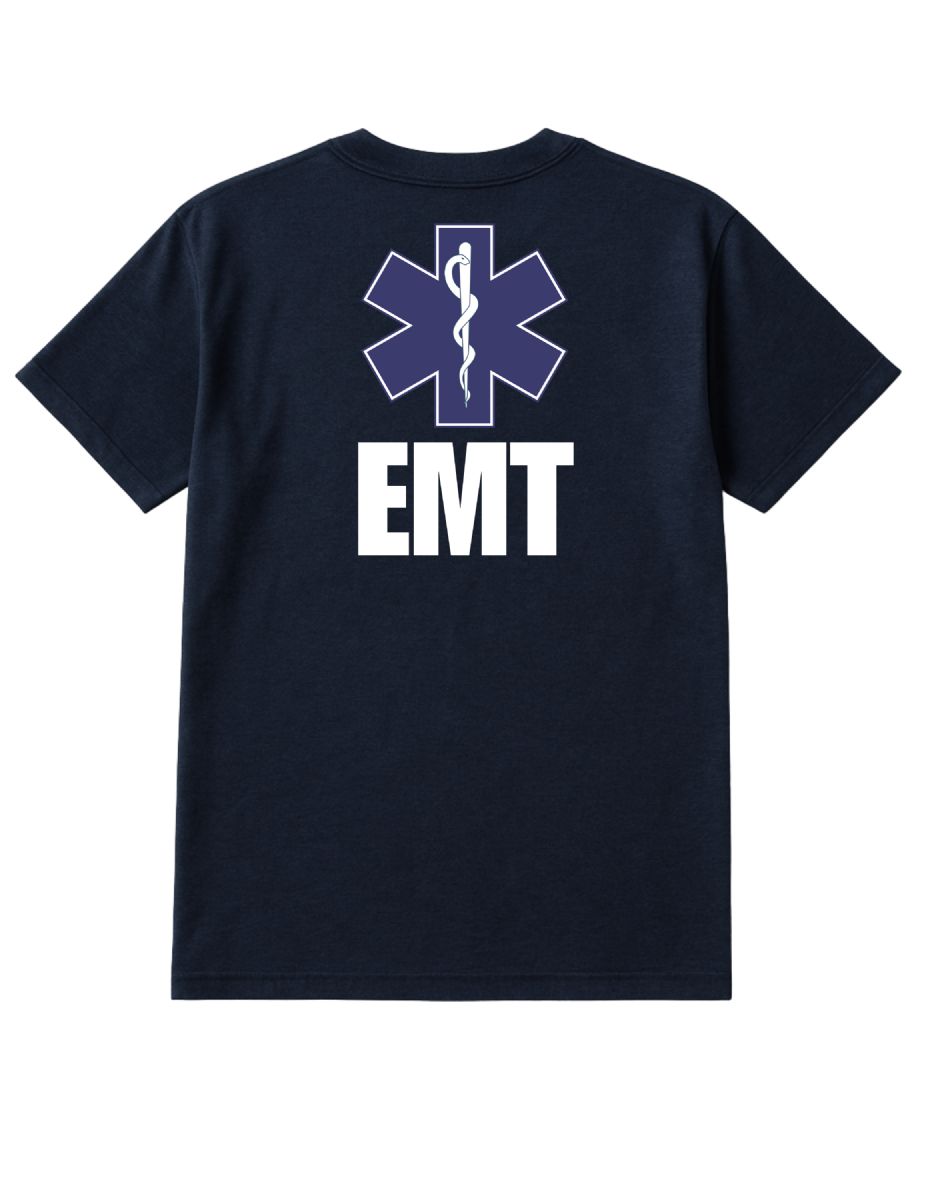 48 Pieces Unisex Cotton Emt Printed T Shirt Navy With White Print Back And Front Size Medium - Event Personnel Tees