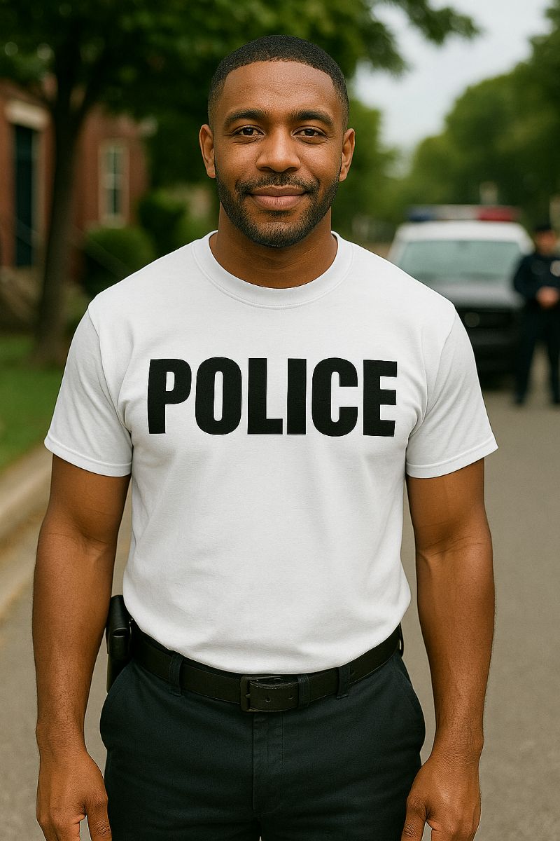 36 Pieces Unisex Cotton Police Printed T Shirt White With Black Print Back And Front Size Large - Event Personnel Tees