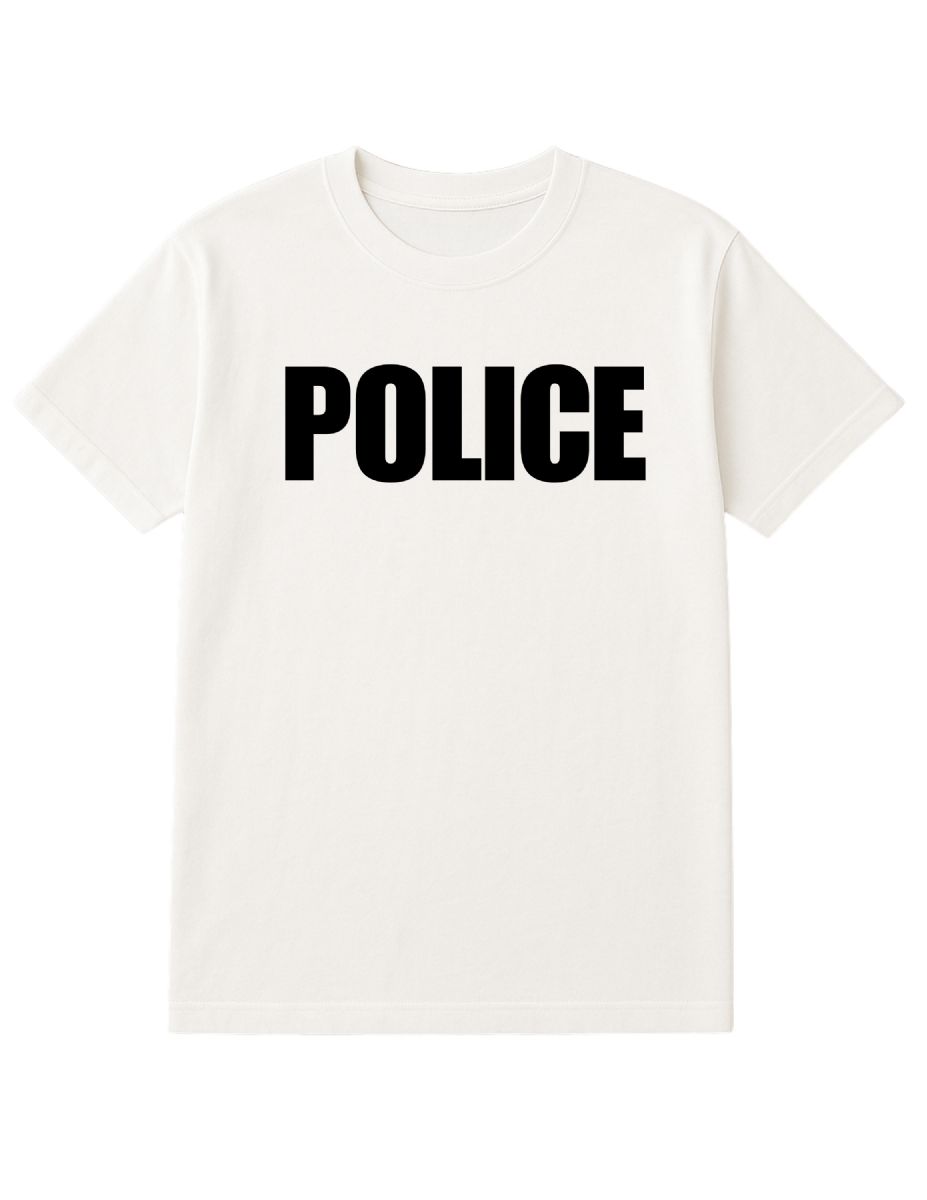 60 Pieces Unisex Cotton Police Printed T Shirt White With Black Print Back And Front Size Large - Event Apparel
